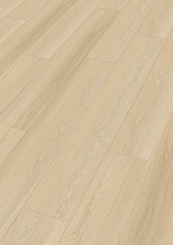 Seine wasserfeste Rigid-Vinyl-Trägerplatte macht ihn widerstandsfähig gegen Feuchtigkeit, wodurch er optimal für Wohn- und Feuchträume wie Küchen und Bäder geeignet ist. Die mehrlagige, strapazierfähige Vinyloberfläche mit einer robusten Nutzschicht von 0,55 mm schützt zuverlässig vor Abnutzung und erleichtert zugleich die Pflege. Zudem verfügt der Boden über einen integrierten Schallschutz, in Form eines 1 mm druckstabilen IXPE-Schaum, zur Reduzierung des Trittschalls.
