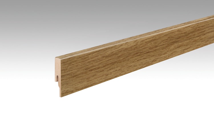 Die MEISTER Fußleiste Profil 20 PK Brass Band 20198 - 2380 mm besticht durch seine braune Holzoptik und sorgt für einen sauberen Übergang zwischen Boden und Wand. Ideal für die Meister Designböden.