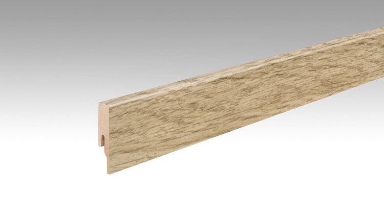 Die MEISTER Fußleiste Profil 20 PK Vogue 20195 - 2380 mm bietet mit seiner natürlichen Holzoptik einen sauberen Übergang zwischen Boden und Wand. Ideal für die Meister Designböden.